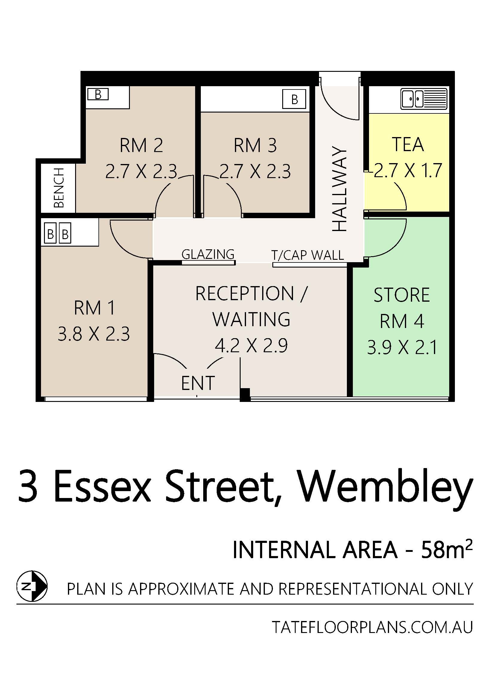 - Floor Area is 58 m²