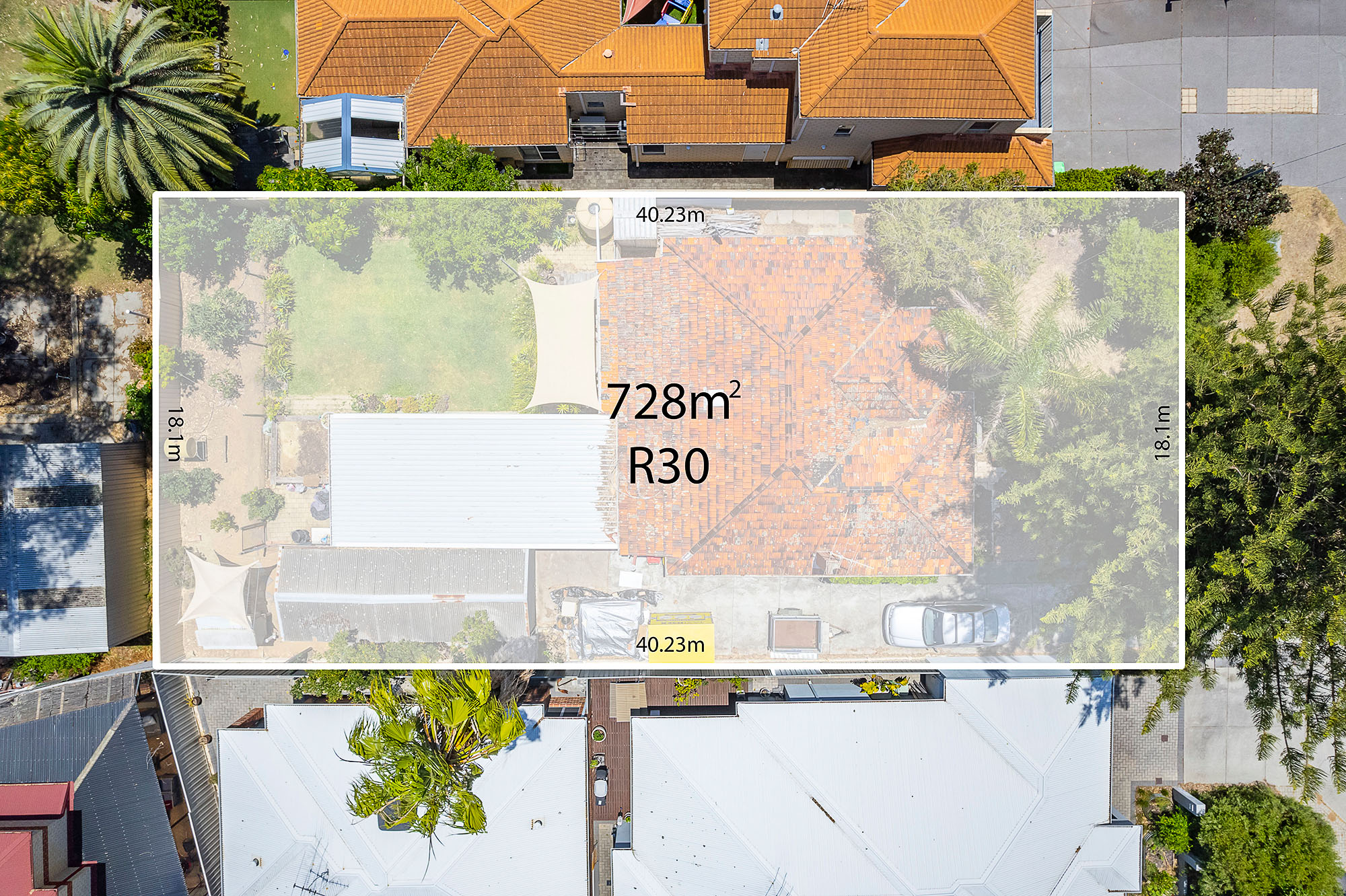 728sqm block, Zoned R30, 18.1 meter frontage, 40.23 meter depth.