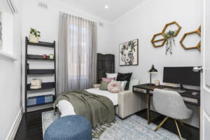 The connection between indoors and outdoors is seamless, with double-glazed bi-fold doors opening to the north facing front yard. Whether enjoying a quiet morning coffee on the verandah or hosting guests in the courtyard garden, the link between indoors and outdoors is both effortless and inviting.